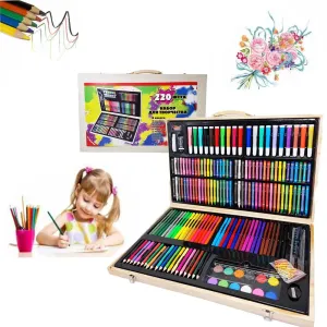 Дитячий набір для малювання та творчості 220 предметів у дерев'яній валізі