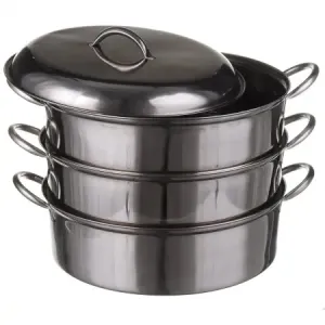 Пароварка з нержавіючої сталі у вигляді 3-х ярусної каструлі з кришкою. У такій пароварці можна готувати як каші, так і овочі з м'ясом, приготування фруктів, овочів, риби. Основна перевага цього виробу в тому, що не потрібно додавання жирів. Вона підходить для дітей, використовується для різних дієт. Дану модель пароварки можна використовувати як невелику 3-х секційну мантишницю, пароварку в якій можна готувати відразу три різні.
