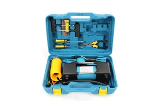 Автомобільний двопоршневий компресор із набором інструментів у кейсі BLUE