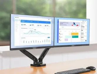 Для оптимальної організації простору на робочому столі вдома або в офісі пропонуємо настільний кронштейн для двох моніторів або телевізорів NB F160.