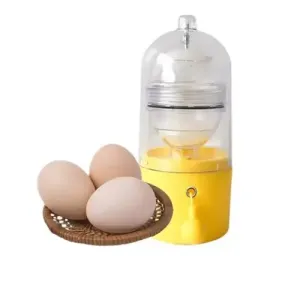 Ручний шейкер для яєць не потребує електрики. Він працює за принципом відцентрової сили. У ньому яєчний білок і жовток поєднуються в шкаралупі, не розбиваючи шкаралупу. Після цього можна варити або розбити яйце і використовувати для смаження або приготування інших страв.