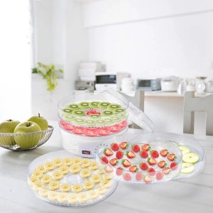 Зберігання висушених продуктів не створить проблем і складностей. для овочів та фруктів має компактні розміри, що дозволяють їй не займати багато місця на вашій кухні. у роботі. Прозора кришка дозволяє стежити за процесом висушування.