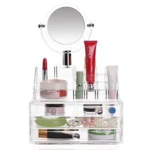 Акриловий органайзер для зберігання косметики із дзеркалом