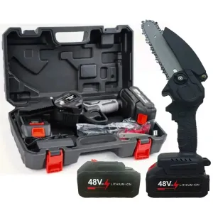 Акумуляторна міні-пила ланцюгова 6 дюймів з двома акумуляторами в кейсі 48 V 5000 mAh 550 Вт