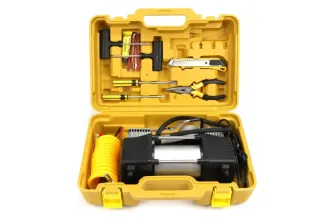 Автомобильный двухпоршневый компрессор с набором инструментов в кейсе YELLOW