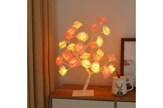Біло-рожева Настільна світлодіодна лампа / Дерево Троянда / Декоративна настільна лампа для дому