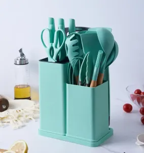 бірюзовий Набір кухонного приладдя 19 предметів з подвійною підставкою дошкою набором ножів ZP-0102