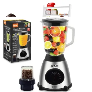 Блендер стаціонарний з кавомолкою RAF - настільний блендер ідеальний помічник для збивання білків, соусів, для змішування фруктів та овочів, приготування коктейлів та смузі, а також для колки льоду для подрібнення та змішування різних видів горіхів, кавових зерен, з двома режимами. Зручна конструкція забезпечує легке очищення та зберігання.
