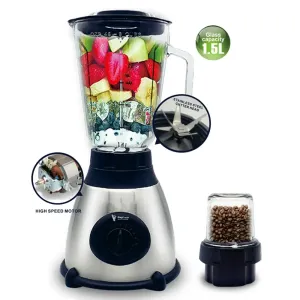 Стаціонарний блендер Haeger HG-288 (Сріблястий) – електричний блендер потужністю 850 Вт, скляна чаша на 1,5 літрів + кавомолка.