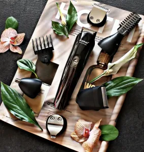 Набор для стрижки волос Kemei представляет собой универсальную машинку для стрижки с 11 насадками. Две насадки для стрижки ширины, насадки регулировки длины 3-12 мм, триммер для носа, дизайнерский триммер, узкий триммер, сеточная бритва, насадка 3-4,5 мм. Лезвия из нержавеющей стали, встроенный аккумулятор и индикатор заряда. Отличный набор на все случаи жизни, вместо нескольких приборов Вам достаточно иметь один такой.