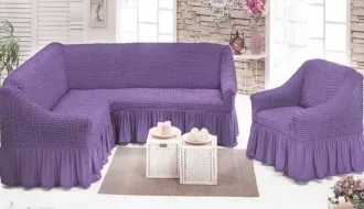 Чохол накидка на кутовий диван з кріслом, комплект чохлів на кутовий диван та крісло з оборкою Туреччина