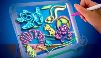За допомогою неонових ручок створюється дивовижне зображення. Є кілька трафаретів, які допоможуть маленькому художнику зорієнтуватися, як поводитися з планшетом.
