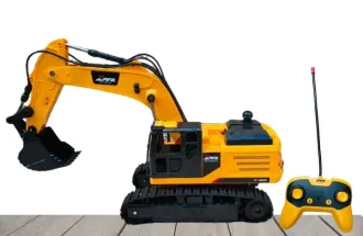 Іграшковий екскаватор точно копіює реальні будівельні машини та повторює їх основні функції. Цей мініатюрний екскаватор не став винятком – він виконаний дуже правдоподібно, хоча у 16 разів менший за свій прототип.
