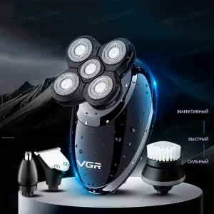 Електробритва V-302 для чоловіків роторна для вологого та сухого гоління з плаваючими головками та триммером 4в1 VGR