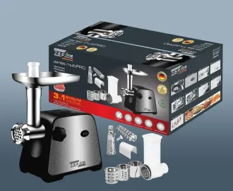Електрична м'ясорубка Zepline ZP-203 потужністю 3800 Вт – багатофункціональний пристрій, ідеальний для приготування фаршу, обробки риби, овочів та інших продуктів. Також у комплекті є насадка для приготування соку. Ця м'ясорубка оснащена функцією реверсу, що дозволяє уникнути проблеми намотування жили на шнек.