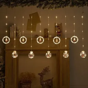 Гірлянда штора 3м з теплим жовтим світінням "Круги та кулі" ялинка, сніговик, дід мороз, олень, шапка SF-50
