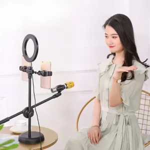Кільцева лампа блогера з подвійною підтримкою мікрофона та телефону.