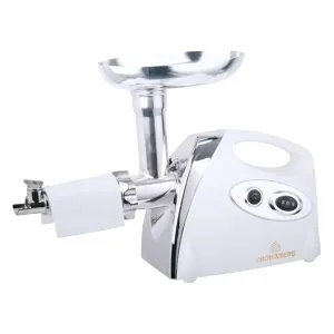 Електрична м'ясорубка Crownberg CB-4213 - це прекрасне Пристрій, який заощадить максимум часу під час приготування фаршу, ковбас та томатного соку. Потужність м'ясорубки становить 2500 Вт, 3 сітки для м'яса з отворами різного діаметру дозволяють регулювати ступінь помелу. За допомогою насадки “кеббе” і насадки для сосисок ви зможете порадувати своїх близьких ароматними ковбасами.