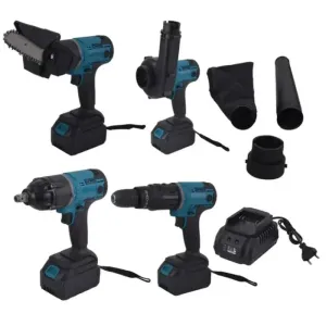 Набір 5 в 1 акумуляторних електроінструментів з 2 АКБ в кейсі - це універсальний комплект інструментів, що включає шуруповерт, пилку, гайковерт, повітродув та заклепочник. Весь набір поставляється у зручному кейсі, що забезпечує зручне зберігання та перенесення інструментів. Комплект також включає два акумулятори, що дозволяє працювати з інструментами без перерв, а також зарядний пристрій для зручної зарядки акумуляторів. Цей набір є відмінним вибором для домашніх майстрів та професіоналів, які потребують універсальних та портативних електроінструментів.