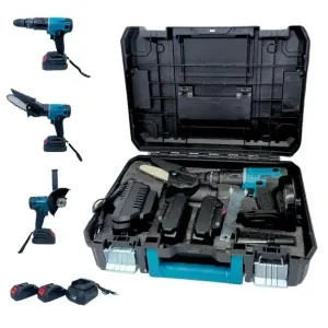 Набір електроінструментів 3в1 - це комплект для виконання різних завдань, від збирання меблів до ремонту та будівництва. Набір включає кілька корисних насадок, які роблять цей інструмент більш універсальним. Шуруповерт дозволить вам швидко і легко загвинчувати або відгвинчувати різні елементи кріплення. Турбінка забезпечує високу продуктивність при шліфуванні та обробці різних поверхонь. А насадка пила з шиною 10 см дозволить вам швидко і точно виконувати різні розпилювальні роботи.