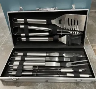 Компактний та легкий набір інструментів для барбекю містить усі необхідні приладдя для приготування страв на свіжому повітрі. Всі інструменти виготовлені з високоякісної харчової нержавіючої сталі.