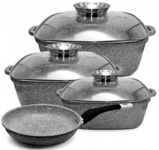 Цей кухонний набір не містить шкідливих речовин у своєму складі та дозволяє готувати їжу з мінімальною кількістю олії. Ідеально для приготування низькокалорійної, дієтичної їжі.