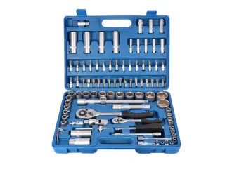 В комплект входять: Головки різних діаметрів та видів, кілька видів бітів, викрутка, адаптер, тріскачка, подовжувач, кренгельс, регулятор, шарніри карданної передачі, ключі. Такого набору інструментів буде достатньо для повноцінного ремонту.