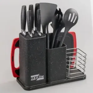 Набір кухонних ножів та приладдя ZP-045 на підставці з дошкою (14 предметів) чорний