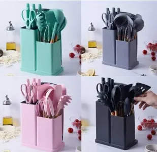 Чудові характеристики: Цей набір включає широкий спектр кухонних інструментів, створених для полегшення процесу приготування страв. Виготовлені з міцного дерева, пластику та термостійкого силікону, вони забезпечують надійність, довговічність та безпеку у використанні. Кожна деталь дбайливо спроектована, щоб покращити ваш досвід приготування їжі.