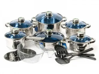 Набір посуду Grand Berg з 18 предметів виготовлений з високоякісної, нержавіючої сталі. Сучасні каструлі з високоякісної нержавіючої сталі з прозорими кришками функціональні, стильні та надійні. Незамінний набір на кухні кожної господарки, що поважає себе.