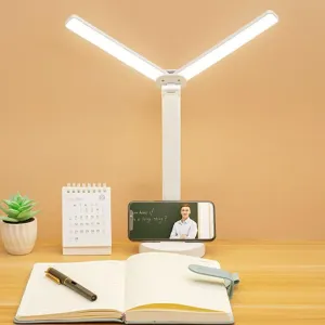 Настільна лампа з регульованою яскравістю світла 1960 / складна поворотна / з сенсорним вимикачем / з акумулятором та USB / нічником / біла