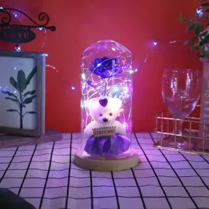 Нічник троянда в колбі з ведмедиком з Led підсвічуванням 20 см колір червоний - це оригінальний подарунок для будь-якої дівчини!