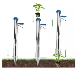 Цей пістолет-саджалка виготовлений із міцної нержавіючої сталі товщиною 0.7 мм, що робить його міцним, довговічним та надійним інструментом для посадки овочів та інших великих культур. Його габаритні розміри в транспортному стані становлять 900 мм у висоту, 120 мм у довжину та ширину, важить він всього 1.7 кг, що дозволяє легко транспортувати його з місця на місце.