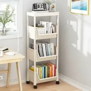 Поличка має 4 колеса, що обертаються на 360 °. Її можна легко перемістити в будь-яке інше місце, не докладаючи багато зусиль.