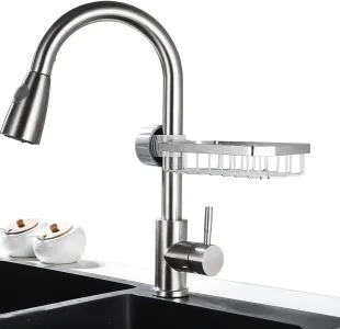 Регульований тримач для губки на змішувач чудовий аксесуар для кухні та ванної.