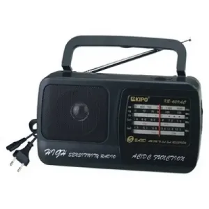 Переносний мережевий радіоприймач KIPO KB-409AC та хвильовий у класичному корпусі. Телескопічна антена забезпечить впевнений прийом у місцях із слабкою трансляцією. Працює як від мережі, так і двох великих батарейок, потужності яких вистачає дуже надовго. Відкидна ручка значно спростить транспортування.