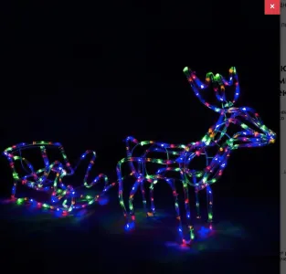 Різнокольоровий Вуличний новорічний олень із дюралайту маленький із санями від мережі