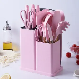 рожевий Набір кухонного приладдя 19 предметів з подвійною підставкою дошкою набором ножів ZP-0102