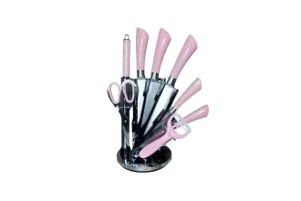 Рожевий Набір столових ножів+ножиці+чистка 9 предметів