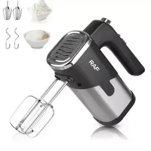 Міксер RAF R-6630 має 5 режимів швидкостей. Також знаходиться режим «Турбо», який збиває дуже швидко. Для зручності виконання різних функцій є 2 види насадок – віночки для збивання та гаки для тесту. Змінити їх можна простим натисканням кнопки.