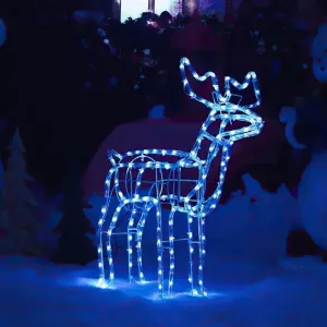 Синій Вуличний новорічний олень із дюралайту з поворотом голови великий 115 см від мережі