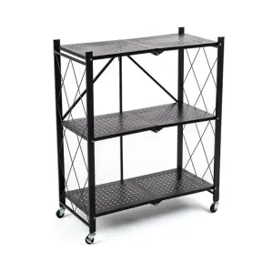 Складаний стелаж оснащений чотирма пластиковими колесами з металевою основою, які дозволяють легко переміщати його. Також два колеса мають функцію блокування, що дозволяє надійно зафіксувати стелаж у вибраному положенні.