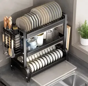 Сушарка кухонного начиння підходить для сушіння/збереження столового приладдя, склянок та тарілок. Стильний дизайн не захаращує простір на кухонній поверхні. Модель виготовлена із якісних, безпечних для здоров'я матеріалів.
