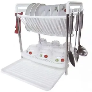 З цією багатофункціональною складовою підставкою для страв не буде крапель і розливів. Двоярусна конструкція може вмістити кілька тарілок, окулярів, чашок та посуду. Він здійснюється завдяки складним технологіям, які запобігають іржавій трубі від легкої сталі та поліпропілену. Це безпечний, надійний, сильний і довговічний продукт, якість якого гарантується. Це легко чистити, тому вам не доведеться турбуватися про його збереження.