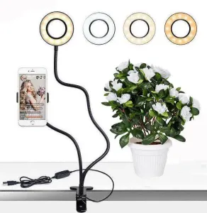 Зручна річ для тих, кому соціальні мережі приносять дохід і популярність, компактна гнучка лампа з тримачем для телефону не тільки висвітлить зйомку, але й звільнить руки від телефону, а універсальна прищіпка дасть можливість встановити кільцеве світло де завгодно. Живлення від Usb дас т можливість працювати від Power Bank, ноутбука, комп'ютера