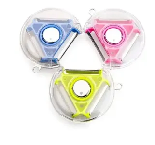 З цим приладом для нарізки ви зможете подрібнити продукти вдвічі швидше. Овочечистка має три леза, виготовлені з високоякісної сталі, а також зручну ергономічну форму. За допомогою різних лез можна як очищати, так і прикрашати овочі. Виявіть фантазію, а наш девайс допоможе втілити її в життя!