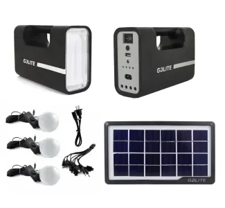 Комплект GDLITE 1 забезпечує працездатність різноманітних гаджетів, якщо Ви знаходитесь далеко від стаціонарних джерел електроенергії. Крім цього він забезпечує освітлення в темний час доби за рахунок світлодіодних лампочок, що входять до комплекту. Світлодіодні лампи також можна використовувати для освітлення приміщення у разі вимкнення електрики.