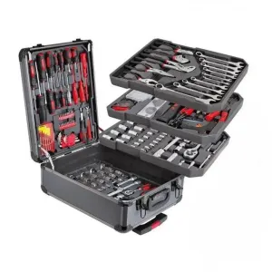 Чотирирівнева валіза передбачає зберігання інструментів у правильному логічному порядку і забезпечує швидкий доступ, а телескопічний кута корпусу додатково захищені металевими накладками, що дозволяє захистити його від ударів.