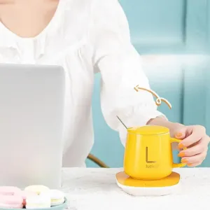 Жовта Чашка на подставке с подогревом Stenson YG01317 L 400мл